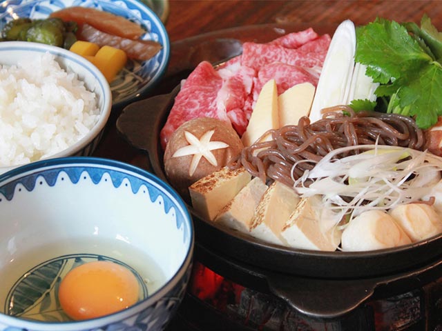 牛肉大好きなあなたも満足するとろける飛騨牛を 使った牛鍋。アツアツのお鍋で心も体も温まります。