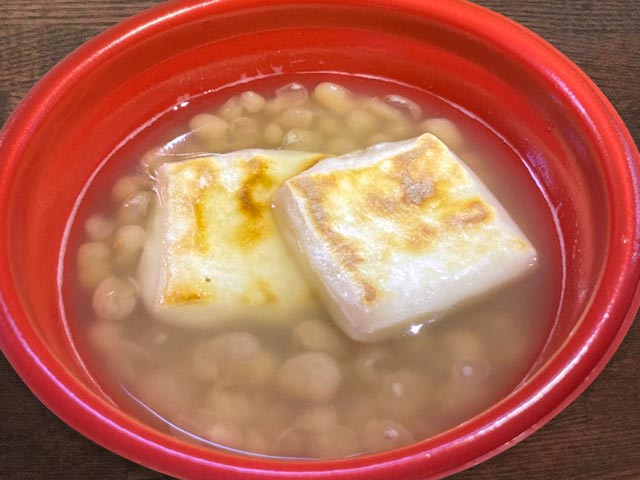 いつもの小豆(あずき)ではなく、白小豆を使った、一風変わった白いぜんざいをご賞味ください。