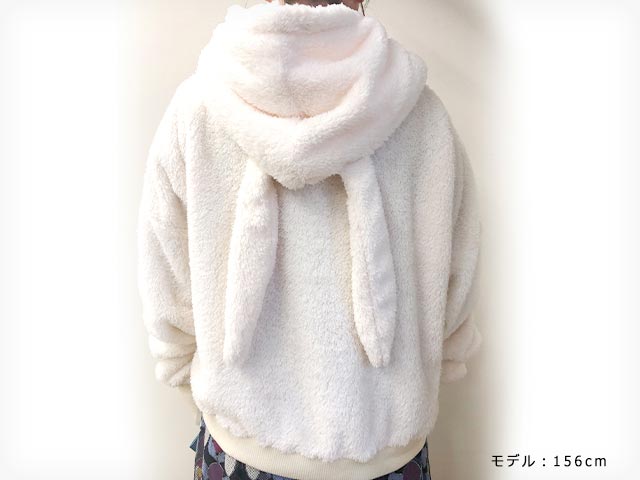 冬にぴったり♪うさ耳がついたモコモコのパーカーです。